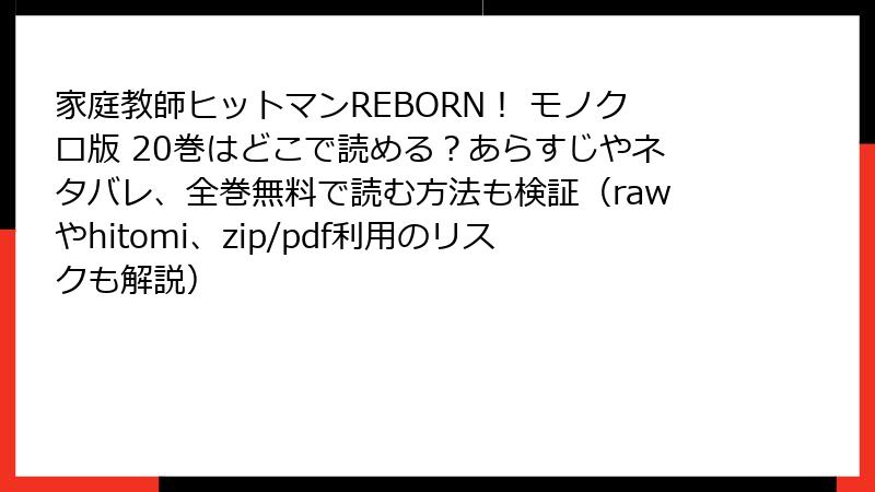 家庭教師ヒットマンREBORN! モノクロ版 20巻はどこで読める?あらすじやネタバレ、全巻無料で読む方法も検証(rawやhitomi、zip/pdf利用のリスクも解説)
