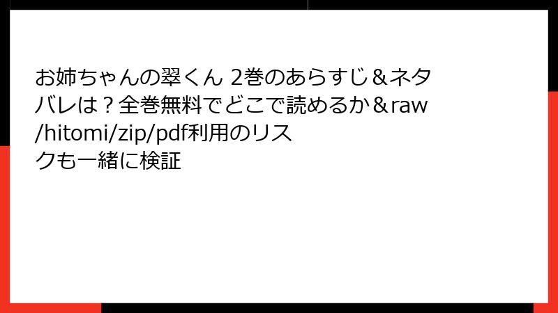 こんにちは、漫画ファン各位! 人気の少女漫画『お姉ちゃんの翠くん』を無料で読みたい気持ちはわかりますが、raw、hitomi、zip、pdf、漫画バンクなどの海賊版サイトを利用するのは、非常に危険です。これらのサイトは著作権を侵害した違法なコンテンツを提供しており、利用者は法的・セキュリティ・経済的なリスクにさらされます。今日は、そんな海賊版サイトのリスクを詳しく解説します。文化庁や総務省の情報、業界団体の調査に基づき、具体例を交えて読み応えのある内容でお届けします。安全に漫画を楽しむためにも、ぜひ最後までお読みください。