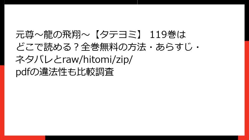 全体として、119巻はアクションの爽快さとドラマの重厚さを両立させた傑作。タテヨミ形式の利便性も相まって、スマホでサクサク読めます。まだ読んでいない方は、ぜひこの巻からチャレンジを! あなたの漫画ライフに、龍の飛翔のような興奮を加えてくれるはずです。次回のレビューもお楽しみに♪
