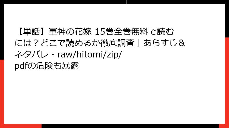 【単話】軍神の花嫁 15巻全巻無料で読むには?どこで読めるか徹底調査|あらすじ&ネタバレ・raw/hitomi/zip/pdfの危険も暴露