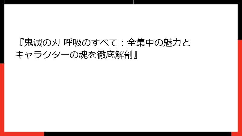この「全集中の呼吸」は、戦闘における超人的な力を引き出す技術であり、キャラクターの個性や物語のテーマを象徴する重要な要素です。