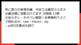 - 品質の低下: 違法サイトのスキャン版は画質が悪く、誤植や欠損が多い。倫理的に、作者の努力を尊重しない行為はファン失格です。