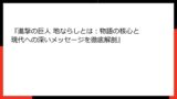 『進撃の巨人』のストーリーは、単なるアクションや冒険にとどまらず、深い社会的・歴史的テーマを扱っています。