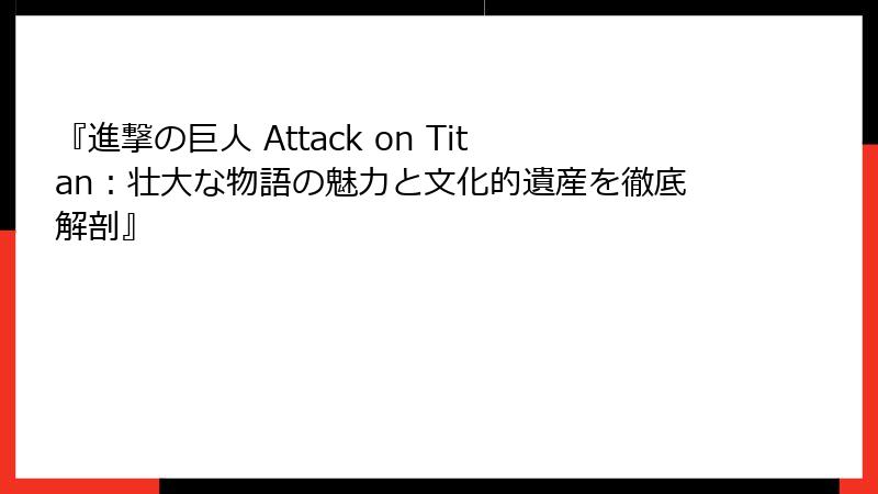この段落では、『進撃の巨人』の基本情報、文化的影響、テーマの深さ、そしてなぜこの作品が世界中で愛されるのかを詳細に探っていきます。