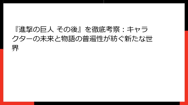 「その後」は、進撃の巨人の未来を形作る鍵であり、ファンの創造性がその原動力です。