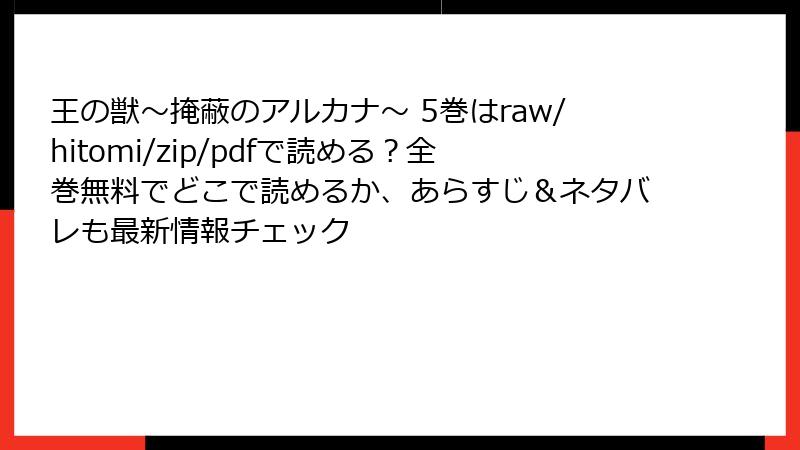 『王の獣~掩蔽のアルカナ~』は、藤間麗先生による人気の皇宮ファンタジー漫画で、緻密なストーリーと美しい作画が多くのファンを魅了しています。しかし、無料で読めるという誘惑から、raw、hitomi、zip、pdf、漫画バンクなどの海賊版サイトを利用しようとする人もいるかもしれません。これらのサイトは一見便利に見えますが、実は重大なリスクが潜んでいます。この記事では、海賊版サイトで『王の獣~掩蔽のアルカナ~』を読むことの危険性を、法律、倫理、技術的な観点から詳しく解説します。ブログ形式で読みやすくまとめましたので、ぜひ最後までご覧ください!