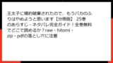 - マルウェア感染:rawやzipファイルを提供するサイトは、マルウェア(ウイルス)を仕込んだファイルを配布することがあります。『王の獣』のpdfをダウンロードしたつもりが、デバイスがウイルスに感染し、データが破損したり、動作が遅くなるケースが報告されています。