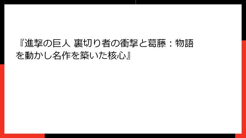 『進撃の巨人』における裏切りは、単なるプロットの展開装置ではありません。