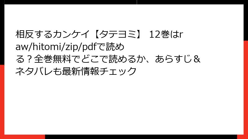 こんにちは、漫画ファンの皆さん! 人気BLタテヨミマンガ『相反するカンケイ【タテヨミ】』の12巻が話題沸騰中ですが、raw、hitomi、zip、pdf、漫画バンクなどの海賊版サイトで無料で読もうとする人が増えていますよね。でも、待ってください! これらのサイトは一見便利に見えますが、実は深刻なリスクが満載。法的問題からセキュリティの脅威、倫理的な側面まで、利用すると後悔する可能性大です。本記事では、そんな海賊版サイトの危険性を詳しく掘り下げて解説します。ブログ形式で読みやすくまとめましたので、参考にどうぞ。絶対に正規のルートで楽しむことをおすすめします!