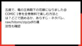 | 高品質なコンテンツ | 公式版は高解像度の画質、正確な翻訳、完全なストーリーを保証。フルカラー版も楽しめる場合あり。 |
