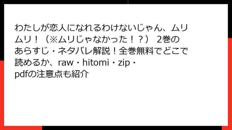 - 『わたしが恋人になれるわけないじゃん、ムリムリ!(※ムリじゃなかった!?)』2巻 レビュー・口コミ・評判:ファン熱狂の理由を徹底分析