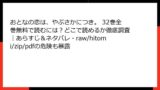 - zip/pdf配布:SNSやフォーラムで配布されるファイルは、マルウェアの温床。『#ギャルバニア』の全巻データに見せかけた詐欺ファイルも報告されている。