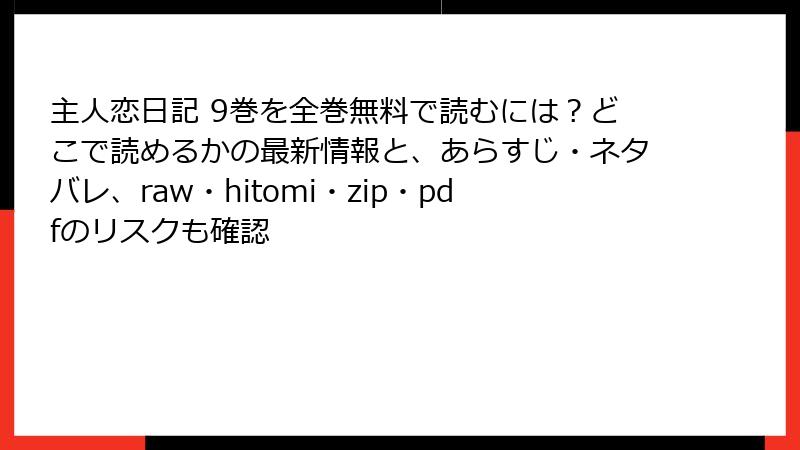 吉永ゆうの人気少女漫画『主人恋日記』を、raw、hitomi、zip、pdf、漫画バンクなどの海賊版サイトで読むことは、一見手軽で無料に見えますが、重大なリスクを伴います。これらのサイトは著作権を侵害する非合法なプラットフォームであり、利用することで法的、倫理的、技術的な問題に直面する可能性があります。この記事では、こうした海賊版サイトを利用するリスクを詳細に解説し、なぜ正規の方法で漫画を楽しむべきかを明らかにします。