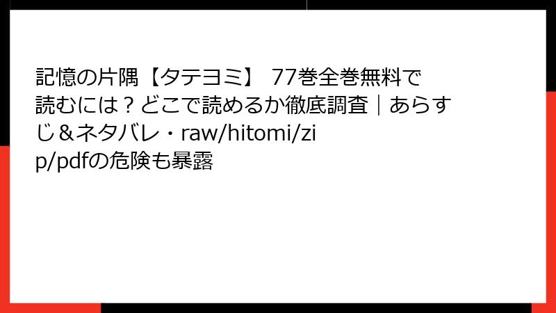 3. 記憶の片隅【タテヨミ】を海賊版サイトで読むリスク:raw/hitomi/zip/pdf/漫画バンクの危険性を徹底解説