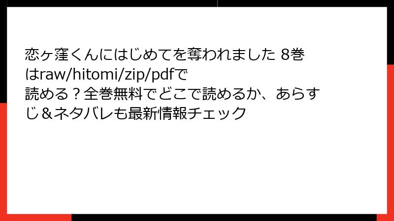 『恋ヶ窪くんにはじめてを奪われました』をraw、hitomi、zip、pdf、漫画バンクなどの海賊版サイトで読むことは、法的リスク、倫理的問題、セキュリティの危険、品質の低下など、多くのデメリットを伴います。漫画業界を支え、安全で高品質な読書体験を得るためには、正規のプラットフォームを利用することが賢明です。作者や作品への敬意を持ち、安心してラブコメの甘い世界に浸るために、ぜひ公式のサービスを選びましょう。海賊版サイトの誘惑に負けず、漫画文化を長く楽しむための選択を!