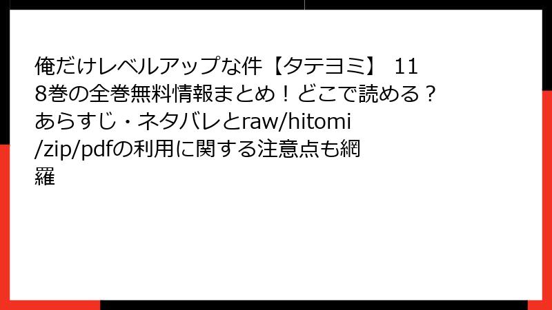 俺だけレベルアップな件【タテヨミ】 118巻の全巻無料情報まとめ!どこで読める?あらすじ・ネタバレとraw/hitomi/zip/pdfの利用に関する注意点も網羅