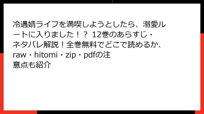 『冷遇婿ライフを満喫しようとしたら、溺愛ルートに入りました!?』は、薫とアレンのドキドキの溺愛ストーリーや宮廷のドラマが魅力の傑作です。しかし、raw、hitomi、漫画バンクなどの海賊版サイトで読むことは、法的トラブル、セキュリティ被害、作者や業界へのダメージといった大きなリスクを伴います。無料の誘惑は魅力的かもしれませんが、マンガ文化を支え、安心して楽しむためには正規の購入・購読が一番。ファンの皆さんには、ぜひ公式ルートでこの素晴らしい作品を応援してほしいです!
