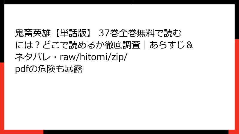 こんにちは、漫画好きの皆さん! 今日は、よのき先生の『鬼畜英雄【単話版】』のような魅力的な作品を、raw、hitomi、zip、pdf、漫画バンクなどの海賊版サイトで読むことのリスクについて、深掘りしてお話しします。無料で最新話にアクセスできるのは魅力的ですが、2025年現在、これらのサイトは法的・セキュリティ・経済的な罠だらけ。利用者の被害事例が急増しており、軽い気持ちで訪れると取り返しのつかない事態に陥る可能性があります。この記事では、複数の側面からリスクを読み応えのある内容で解説し、なぜ正規ルートを選ぶべきかを紐解いていきます。海賊版に手を出したことのある方も、これを読んで後悔を防ぎましょう!