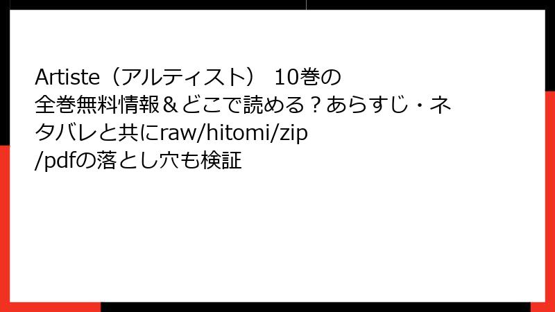 こんにちは、漫画ファンの皆さん! 『Artiste(アルティスト)』のような素晴らしい作品を楽しむとき、つい手軽に読める方法を探したくなる気持ち、わかります。でも、raw、hitomi、zip、pdf、漫画バンクなどの海賊版サイトを利用するのは、実は大きなリスクを伴います。この記事では、こうした海賊版サイトで漫画を読むことの危険性を、具体的に、そして詳しく解説します。『Artiste』の魅力を正規の方法で安全に楽しむためにも、ぜひ最後まで読んでみてください!