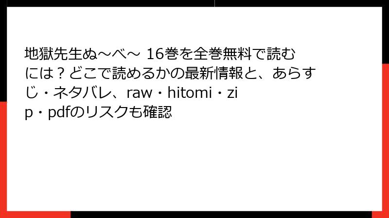 raw/hitomi/zip/pdf/漫画バンクなどの海賊版サイトは、法的罰則、セキュリティ脅威、情報漏洩、倫理的後悔の四重苦。2025年の今、ドメイン変更を繰り返すこれらのサイトは、利用者を餌食に生き延びていますが、被害事例は増える一方。『地獄先生ぬ~べ~』のスリルを正規アプリや電子書籍で味わうのが賢明です。無料トライアル豊富なサービスを選べば、コストゼロで楽しめますよ! 皆さんのコメントで、安全読書術をシェアしましょう。次回はおすすめ正規サイト特集かも? 安全第一で、漫画ライフを満喫してください♪