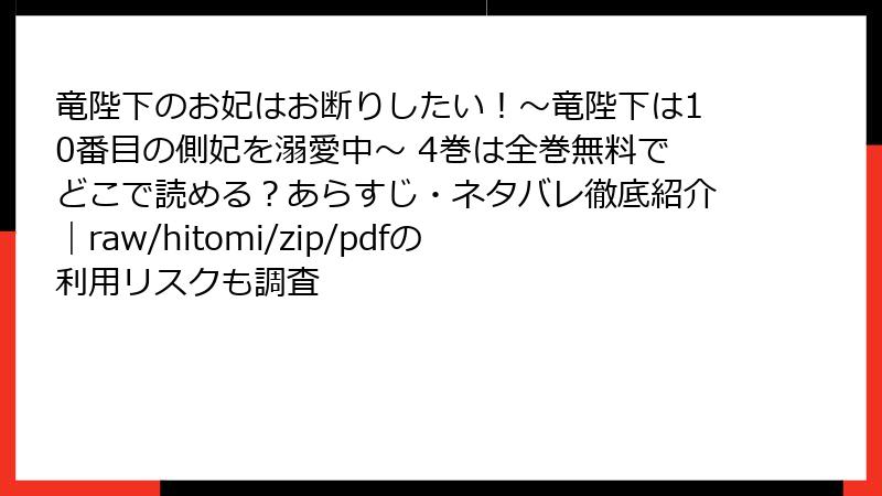 - 低画質:海賊版サイトのスキャンは、画質が低く、文字(特にふりがな)が読みにくい場合があります。『竜陛下のお妃はお断りしたい!』の繊細なイラストは、公式の電子版や紙媒体でこそその美しさが際立ちます。