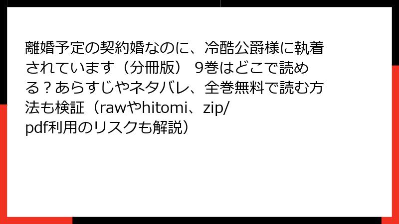 以下では、「離婚予定の契約婚なのに、冷酷公爵様に執着されています」を海賊版サイトで読むことによる具体的なリスクを、複数の観点から詳しく説明します。