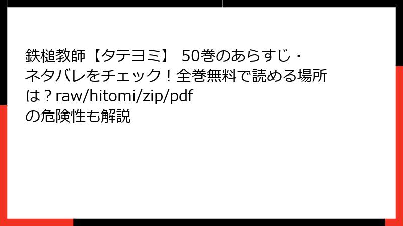 鉄槌教師【タテヨミ】 50巻のあらすじ・ネタバレをチェック!全巻無料で読める場所は?raw/hitomi/zip/pdfの危険性も解説