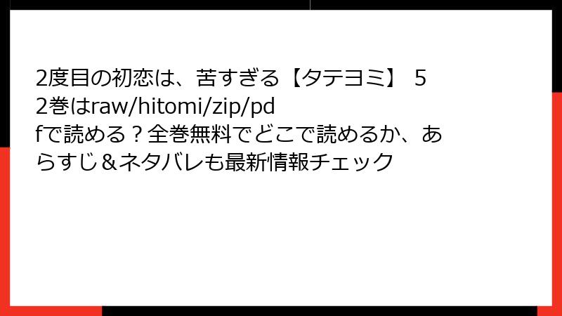 こんにちは、漫画ファンの皆さん! 今回は、胸を締め付けるラブストーリー『2度目の初恋は、苦すぎる【タテヨミ】』の52巻のネタバレを、たっぷりとお届けします。この巻は、物語のクライマックスに向けて加速する展開が満載で、伊織と理央の関係が大きく動く重要なターニングポイント。タテヨミ形式ならではの臨場感あふれるコマ割りと、美しいイラストが感情を盛り上げます。以下、ネタバレ全開で、52巻の詳細なあらすじ、キャラクターの心情、注目シーンを掘り下げます。まだ読んでいない方はご注意を! さっそく、物語の核心に迫っていきましょう。