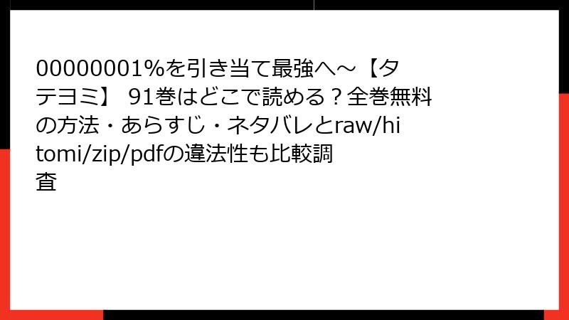 00000001%を引き当て最強へ~【タテヨミ】 91巻はどこで読める?全巻無料の方法・あらすじ・ネタバレとraw/hitomi/zip/pdfの違法性も比較調査