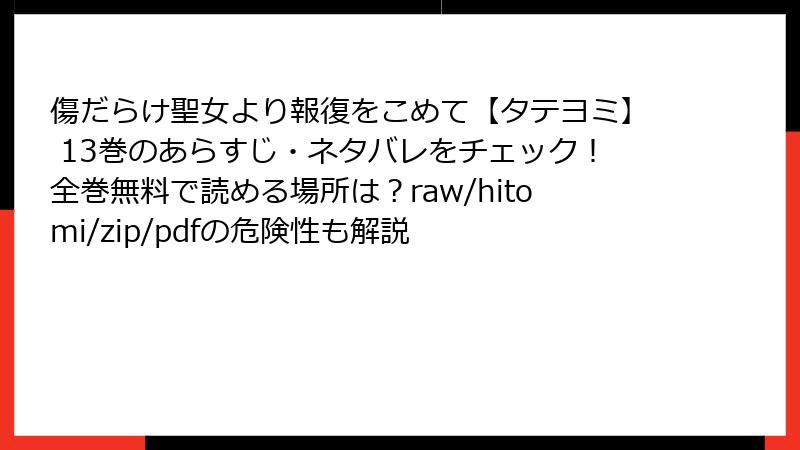 こんにちは、マンガ愛好家の皆さん! 『傷だらけ聖女より報復をこめて』は、ルーアの壮絶な復讐劇が魅力のダークファンタジーWebtoonで、13巻の展開も話題沸騰中ですよね。しかし、この人気作品をraw、hitomi、zip、pdf、漫画バンクなどの海賊版サイトで読もうと考える方もいるかもしれません。今回は、そうした海賊版サイトを利用することのリスクを、ブログ記事形式で徹底解説します。無料で読める誘惑は魅力的ですが、背後には深刻な危険が潜んでいます。