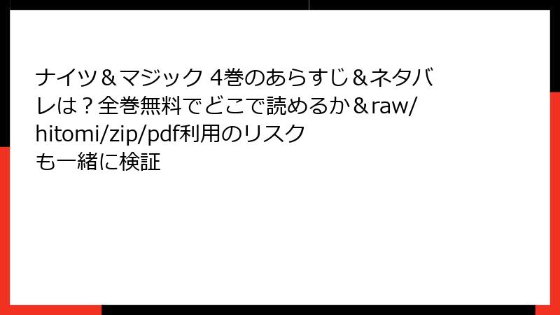 『ナイツ&マジック』4巻の魅力的なストーリーやロボットバトルに夢中になり、すぐにでも読みたくなる気持ちはわかります! しかし、raw、hitomi、zip、pdf、漫画バンクなどの海賊版サイトで無料で読もうとすることは、重大なリスクを伴います。この記事では、海賊版サイトを利用することの危険性を、法的、倫理的、技術的な観点から詳しく解説します。複数の