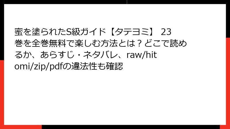 こんにちは、漫画ファンの皆さん!『蜜を塗られたS級ガイド【タテヨミ】』のような人気BL漫画は、熱いストーリーと魅力的なキャラクターで心を掴みますよね。でも、raw、hitomi、zip、pdf、漫画バンクなどの海賊版サイトで無料で読もうと考える人もいるかもしれません。今回は、そんな海賊版サイトを利用することのリスクを、ブログ形式で徹底解説します。法的問題から個人情報の危険まで、知っておくべきポイントを詳しくお届け。読み応えのある内容で、しっかりお伝えしますので、最後までチェックしてください!