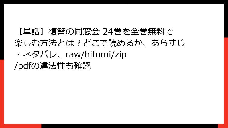 こんにちは、漫画ファンの皆さん! 『復讐の同窓会』のような人気漫画は、つい手軽に読みたいと思うもの。特に、raw、hitomi、zip、pdf、漫画バンクなどの海賊版サイトで無料で読める誘惑は強いですよね。でも、ちょっと待って! これらのサイトを利用することは、重大なリスクを伴います。この記事では、『復讐の同窓会』を海賊版サイトで読むことの危険性を、法的、技術的、倫理的な観点から詳しく解説します。ブログ形式で、わかりやすく読み応えのある内容をお届けしますので、ぜひ最後まで読んでみてください!
