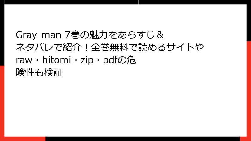 こんにちは、漫画好きの皆さん! ダークファンタジーの名作『D.Gray-man』を愛する私ですが、今日のトピックはちょっとシリアス。raw、hitomi、zip、pdf、漫画バンクなどの海賊版サイトで無料で読もうとする誘惑はわかります。でも、2025年現在、これらのサイトはただの「無料」じゃありません。法的トラブルからデバイス破壊、個人情報流出まで、恐ろしいリスクが待ち構えています。このブログ記事では、そんな海賊版サイトの危険性を、複数の角度から詳しく解説。星野桂先生の傑作を安全に楽しむためのヒントも交えつつ、読み応えのある内容でお届けします。ネタバレなしで、純粋に「読む」ことのリスクに焦点を当てますよ!