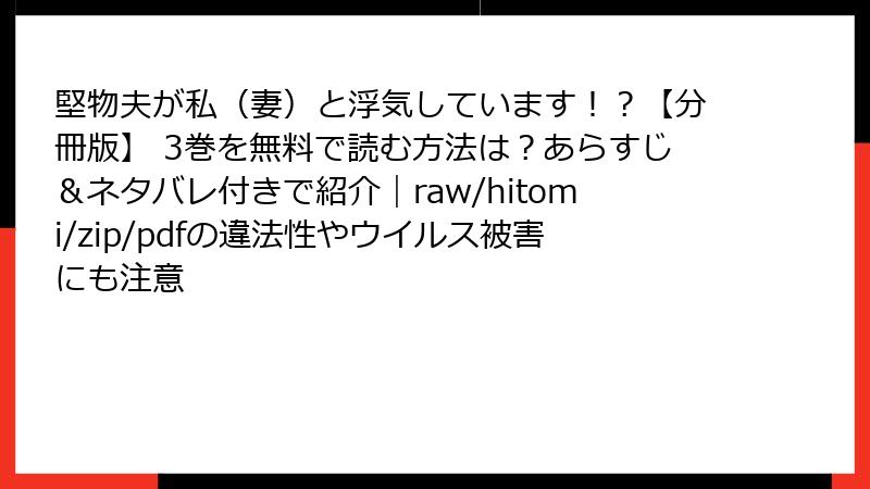 分冊版3巻は、浮気疑惑のどんでん返しが甘い。夫婦愛の配信は、ラブコメ強いサービスで。
