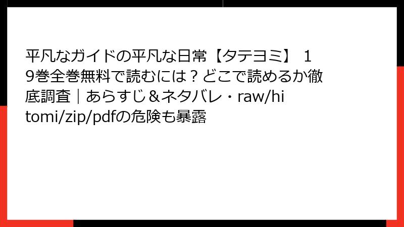 こんにちは、マンガレビューブログの管理人です! 人気の韓国発タテヨミBLウェブトゥーン「平凡なガイドの平凡な日常【タテヨミ】」の19巻が話題沸騰中ですが、raw、hitomi、zip、pdf、漫画バンクなどの海賊版サイトで無料で読もうとする人が増えていますよね。でも、待って! そんな「タダ乗り」の誘惑に負けると、大変なリスクが待ち受けているんです。この記事では、法的・セキュリティ・倫理的な観点から、これらのサイトの危険性を詳しく解説。ネタバレレビューに続いて、今回は「読む前の警告編」としてお届けします。未読の方は正規ルートで楽しむのが一番! それでは、深掘りしていきましょう。