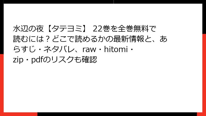 リスクを避けつつ、水辺の夜のような作品を楽しむ方法はたくさんあります! 正規電子書籍サービス(例: Kindle、BookLive、ピッコマ)を利用すれば、初回無料キャンペーンや割引で低コストに読めます。2025年現在、海賊版サイトの閉鎖ラッシュで、合法ルートの利便性も向上中。対策として:
