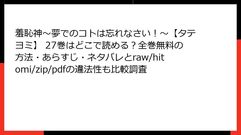 以上、『羞恥神~夢でのコトは忘れなさい!~』27巻のネタバレでした! この巻でハマった方は、ぜひ全巻読破を。コメントであなたの推しシーンや考察を教えてくださいね。次巻の展開も楽しみすぎる! また次のブログでお会いしましょう!