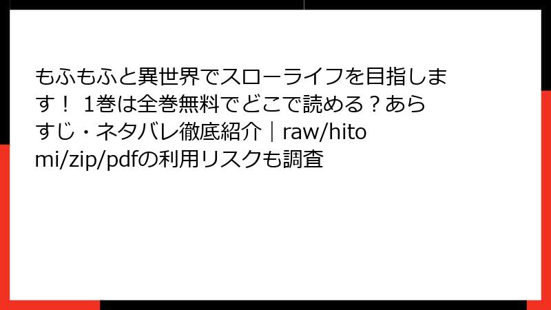 もふもふと異世界でスローライフを目指します! 1巻は全巻無料でどこで読める?あらすじ・ネタバレ徹底紹介|raw/hitomi/zip/pdfの利用リスクも調査