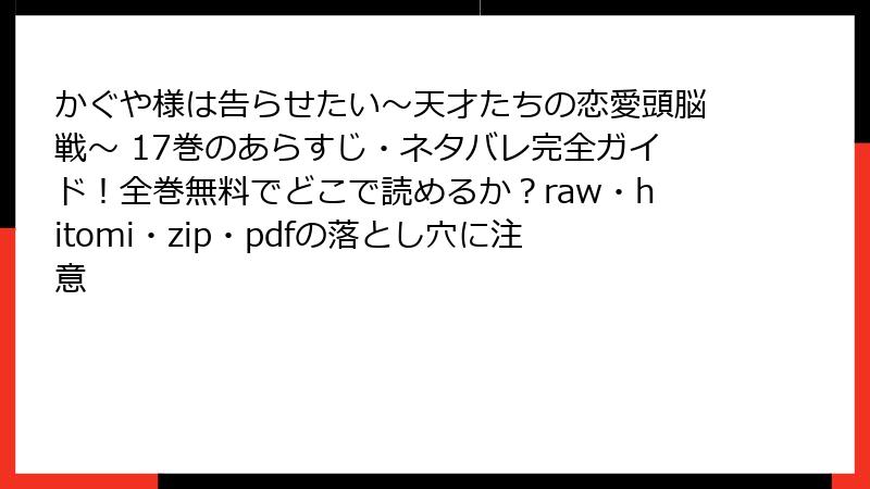 かぐや様は告らせたい~天才たちの恋愛頭脳戦~ 17巻のあらすじ・ネタバレ完全ガイド!全巻無料でどこで読めるか?raw・hitomi・zip・pdfの落とし穴に注意