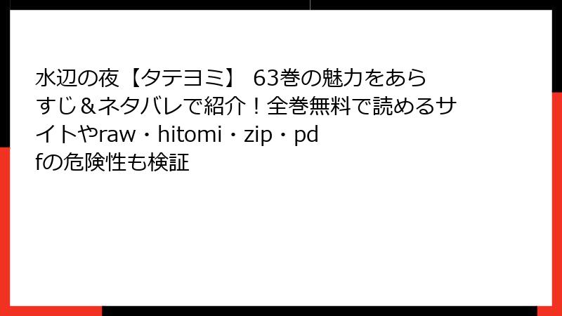こんにちは、漫画ファンの皆さん!水辺の夜【タテヨミ】は、韓国発の人気BL漫画で、そのドラマチックなストーリーと美しいアートワークで多くの読者を魅了しています。しかし、この素晴らしい作品をraw、hitomi、zip、pdf、漫画バンクなどの海賊版サイトで読もうと考える人もいるかもしれません。一見、手軽で無料に見えるこれらのサイトですが、実は多くのリスクが潜んでいます。この記事では、海賊版サイトを利用することの危険性を詳しく解説し、なぜ正規のプラットフォームで読むべきかを掘り下げます。単一の
