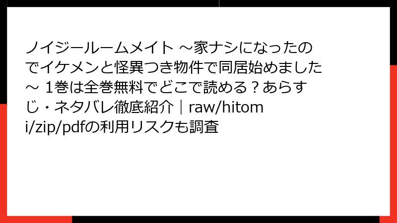 こんにちは、漫画ファンの皆さん! ノイジールームメイト ~家ナシになったのでイケメンと怪異つき物件で同居始めました~ は、緒崎カホさんによる心霊BLコメディの傑作で、笑いとドキドキが詰まった魅力的な作品です。しかし、こうした人気漫画を「raw」「hitomi」「zip」「pdf」「漫画バンク」などの海賊版サイトで読もうと考える方もいるかもしれません。今回は、これらの違法サイトを利用することのリスクを、ブログ記事形式で詳しく解説します。法的な問題から個人情報の危険まで、知っておくべきポイントを網羅的に紹介。安全に漫画を楽しむための知識を深めましょう!