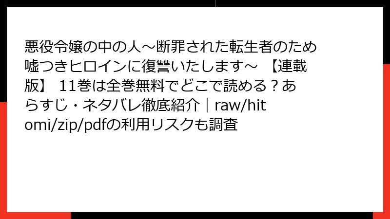 - 悪役令嬢の中の人~断罪された転生者のため嘘つきヒロインに復讐いたします~ 【連載版】 11巻を海賊版サイトで読むリスク:無料の代償は高すぎる