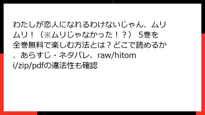 『わたしが恋人になれるわけないじゃん、ムリムリ!(※ムリじゃなかった!?) 5巻』のレビュー・口コミ・評判を徹底解説!