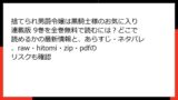- コンテンツの違法性: 海賊版サイトにアップロードされた漫画は、著作権法に違反して複製・配布されています。『運命の番?』のような人気作品は特にターゲットになりやすく、無断でスキャンされたデータがzipやpdf形式で公開されるケースが多いです。