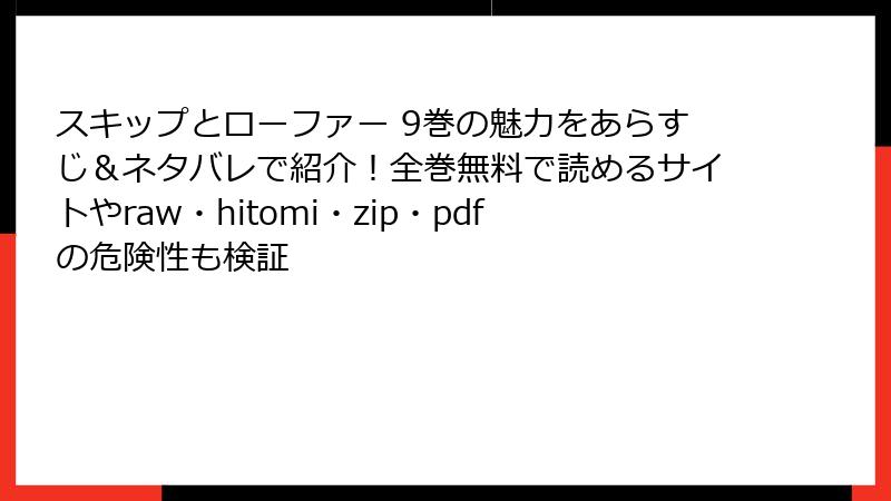 raw/hitomi/zip/pdf/漫画バンクなどの海賊版サイトは、法的罰則、ウイルス感染、プライバシー侵害、クリエイター支援の喪失という多重リスクを抱えています。2025年現在、電子書籍サービス(例: 無料試し読みやサブスク)が充実しており、合法的に楽しめます。『スキップとローファー』を愛するなら、作者を支える選択を! 皆さんの体験談やおすすめ正規サイトを、コメントでシェアしてください。次回は安全な漫画読書のコツをお届けします。