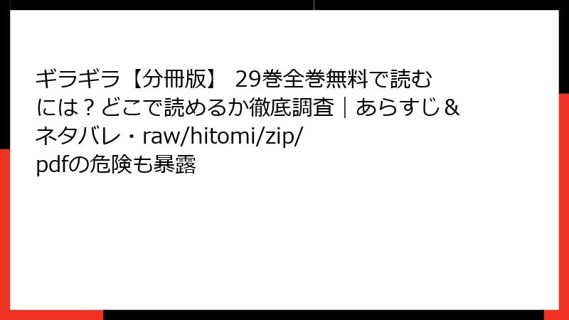 こんにちは、漫画ファン必見のブログへようこそ! 今日は、誰もが一度は心惹かれる「無料で最新巻が読める」という甘い誘惑の裏側に潜む、raw、hitomi、zip、pdf、漫画バンクなどの海賊版サイトのリスクを深掘りします。2025年現在、これらのサイトはドメインを変えながら生き残っていますが、法的制裁、セキュリティの脅威、倫理的ジレンマが待ち構えています。『ギラギラ』のような熱い作品を愛するなら、正規ルートを選んでクリエイターを応援しましょう。この記事では、複数の角度からリスクを分析。読み終わる頃には、海賊版の危険性を痛感するはずです。それでは、早速本題へ!