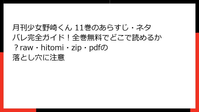 こんにちは、漫画ファンの皆さん! 椿いづみ先生の大人気コメディ『月刊少女野崎くん』第11巻(2019年8月22日発売)は、少女漫画家男子・野崎梅太郎と佐倉千代を中心とした恋愛とギャグの絶妙なブレンドが話題沸騰! 告白ラッシュや漫画制作のドタバタが詰まったこの巻、ファンの反応はどうだったのか? 今回は、ネット上のレビュー、口コミ、評判を徹底収集し、ブログ記事形式で深掘りします。Amazon、楽天、SNS、ブログなどから集めたリアルな声をもとに、読み応え抜群でお届け。ネタバレは控えめに、魅力をたっぷり解説します。さあ、ファンたちの熱い思いを一緒に見ていきましょう!
