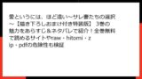 - サポート不足: 公式プラットフォームでは、購入後のサポートや特典(例:作者コメント、限定イラスト)がありますが、海賊版ではこうした恩恵が一切ありません。