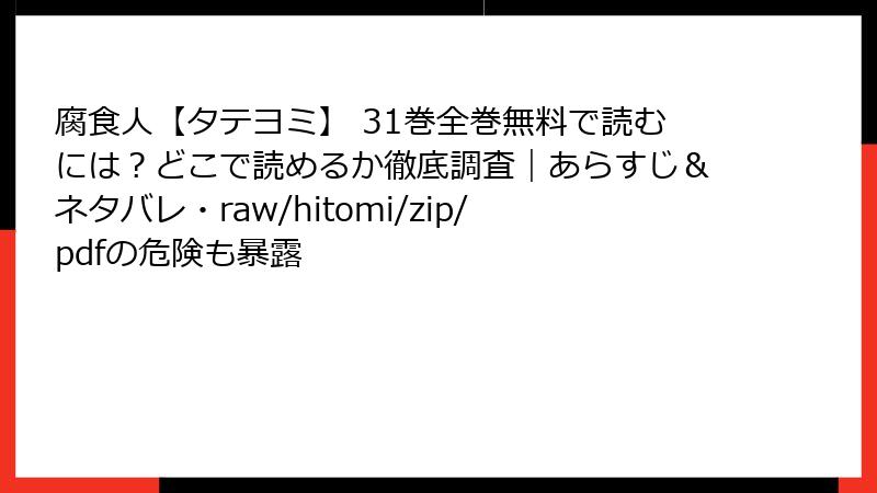 『腐食人【タテヨミ】』31巻のレビュー・口コミ・評判:ファンの熱い声と評価を徹底分析